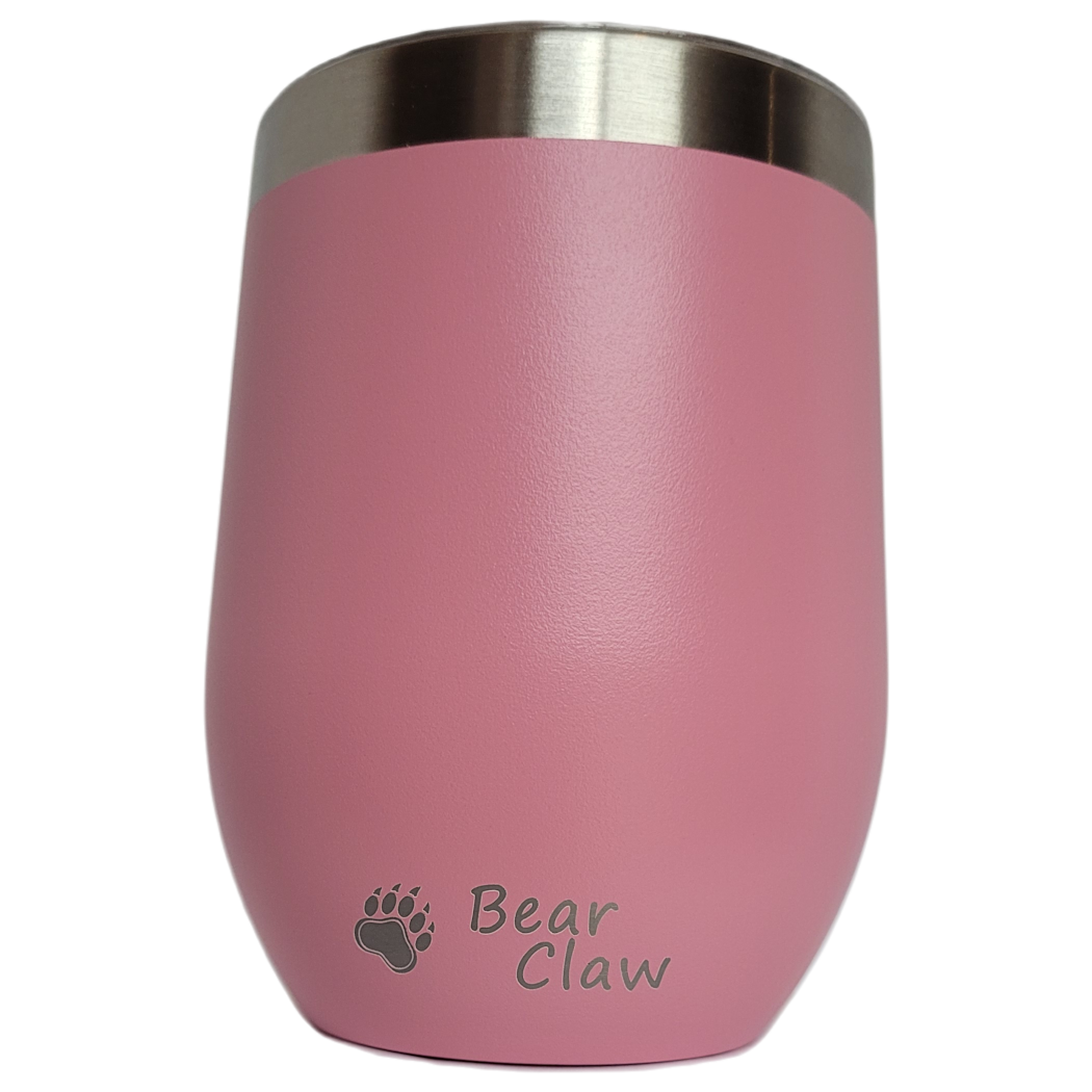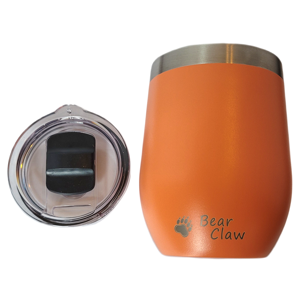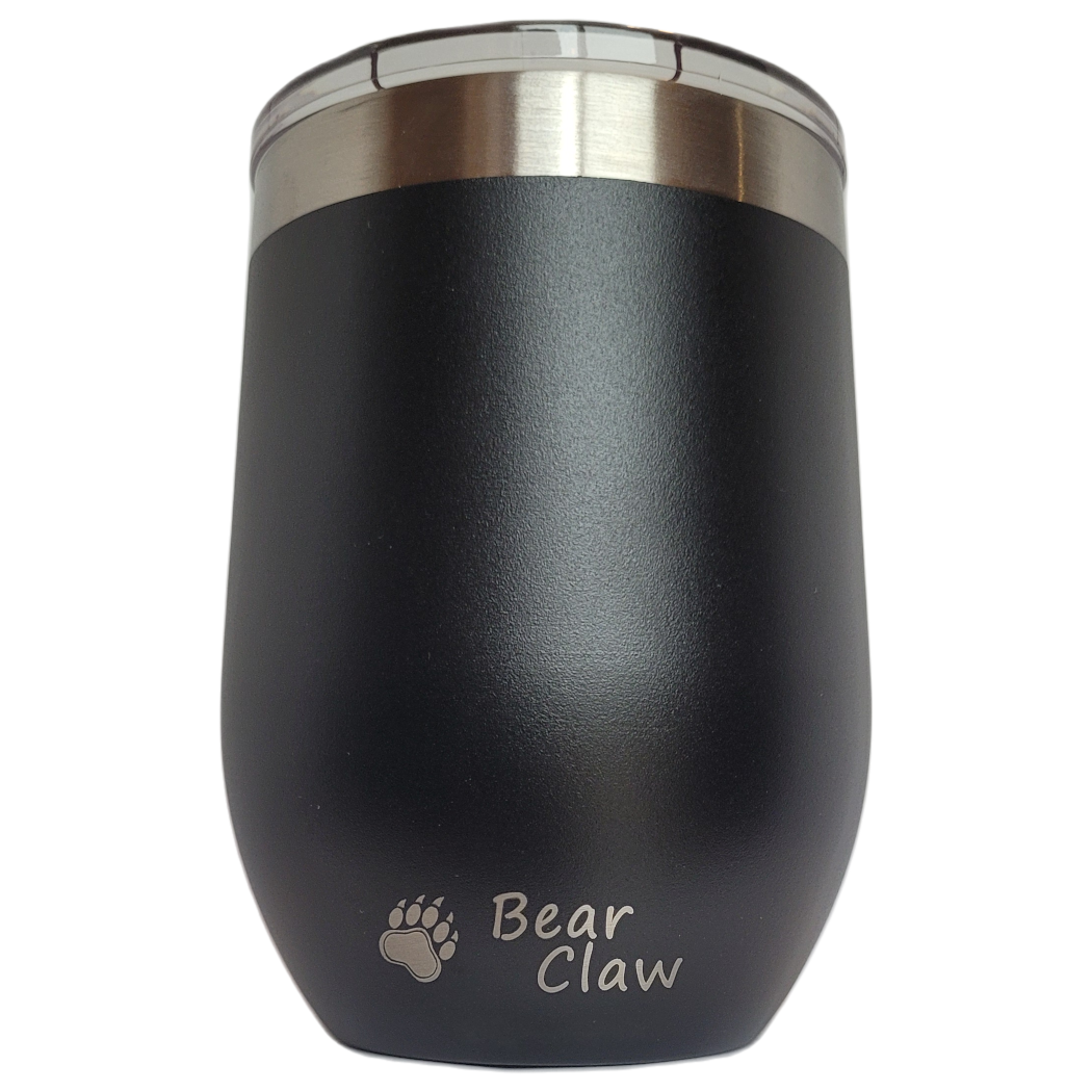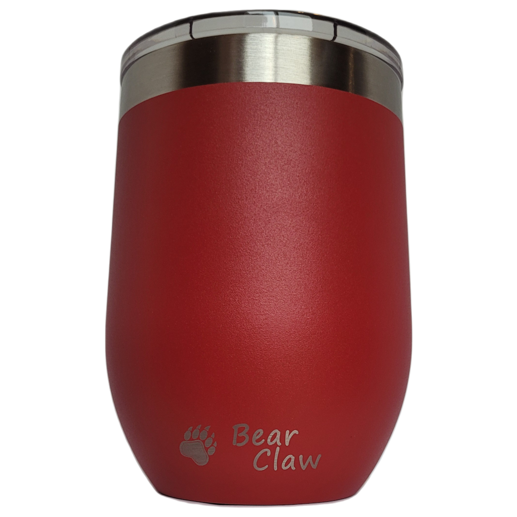 Our 12oz Bear Claw Wine Tumblers are made of double walled stainless steel and the exterior is powder coated to protect your text or logo for a long time. Our lids are spill resistant and come with a detachable magnetic latch for easy cleaning.